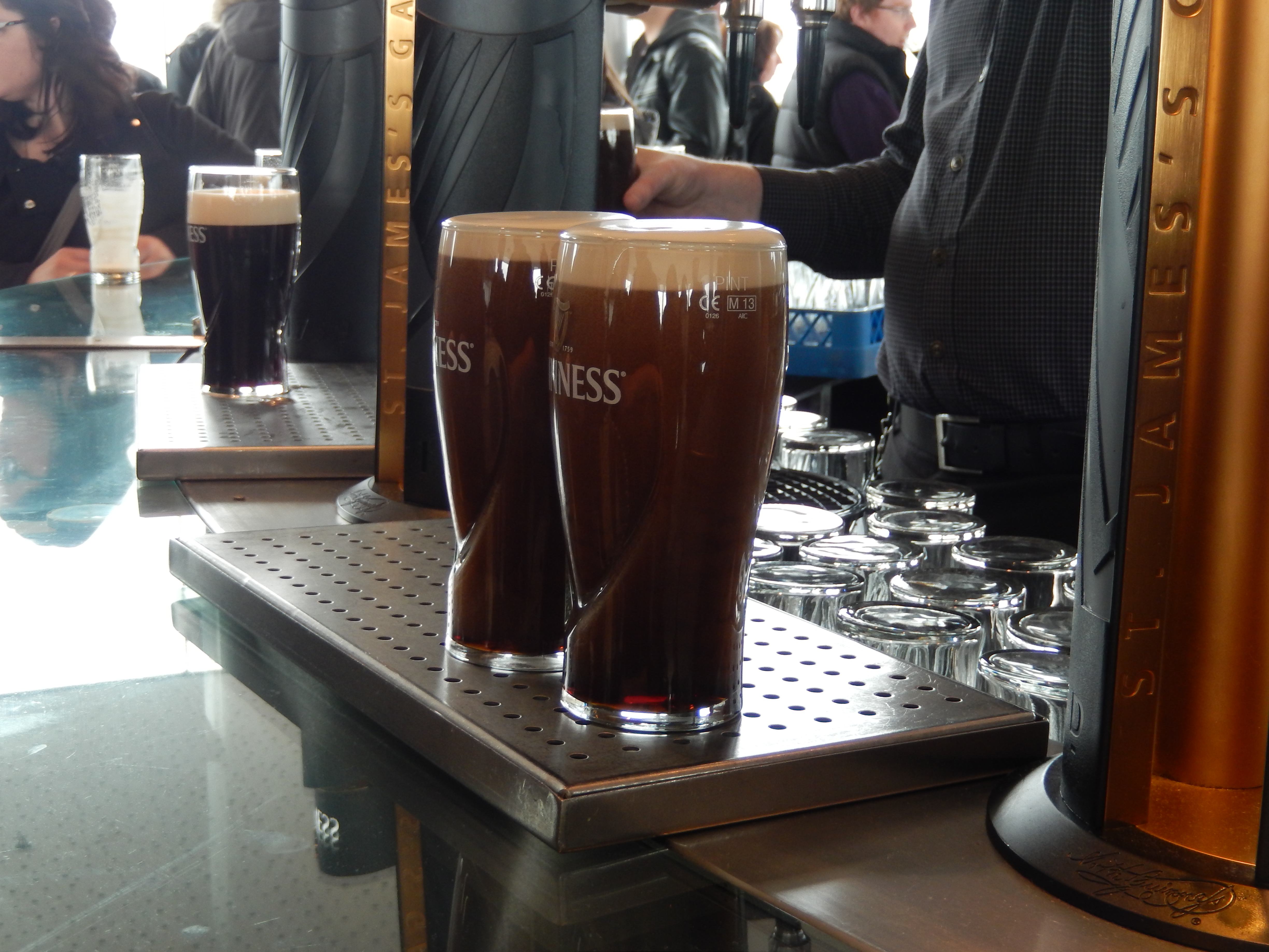 After acquiring all that knowledge, it was time to go up to the seventh floor to the Gravity Bar, an ultra modern space with amazing panoramic views of Dublin and where visitors may drink a pint of Guinness included in the price of admission. Wayne signed up for the Connoisseur Experience (a more in depth hands on session about the beers), so we needed to make time and what a better way to pass time than to be sipping a perfect pint by the window overlooking Dublin.