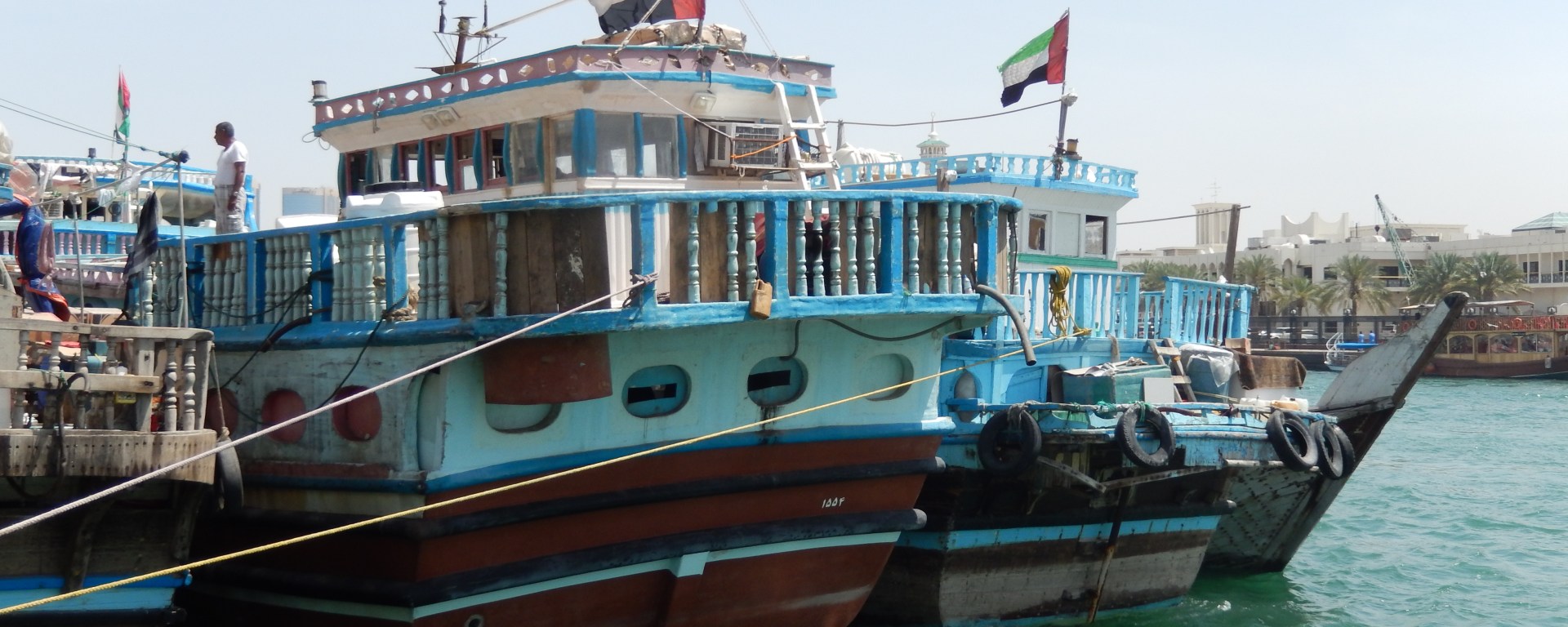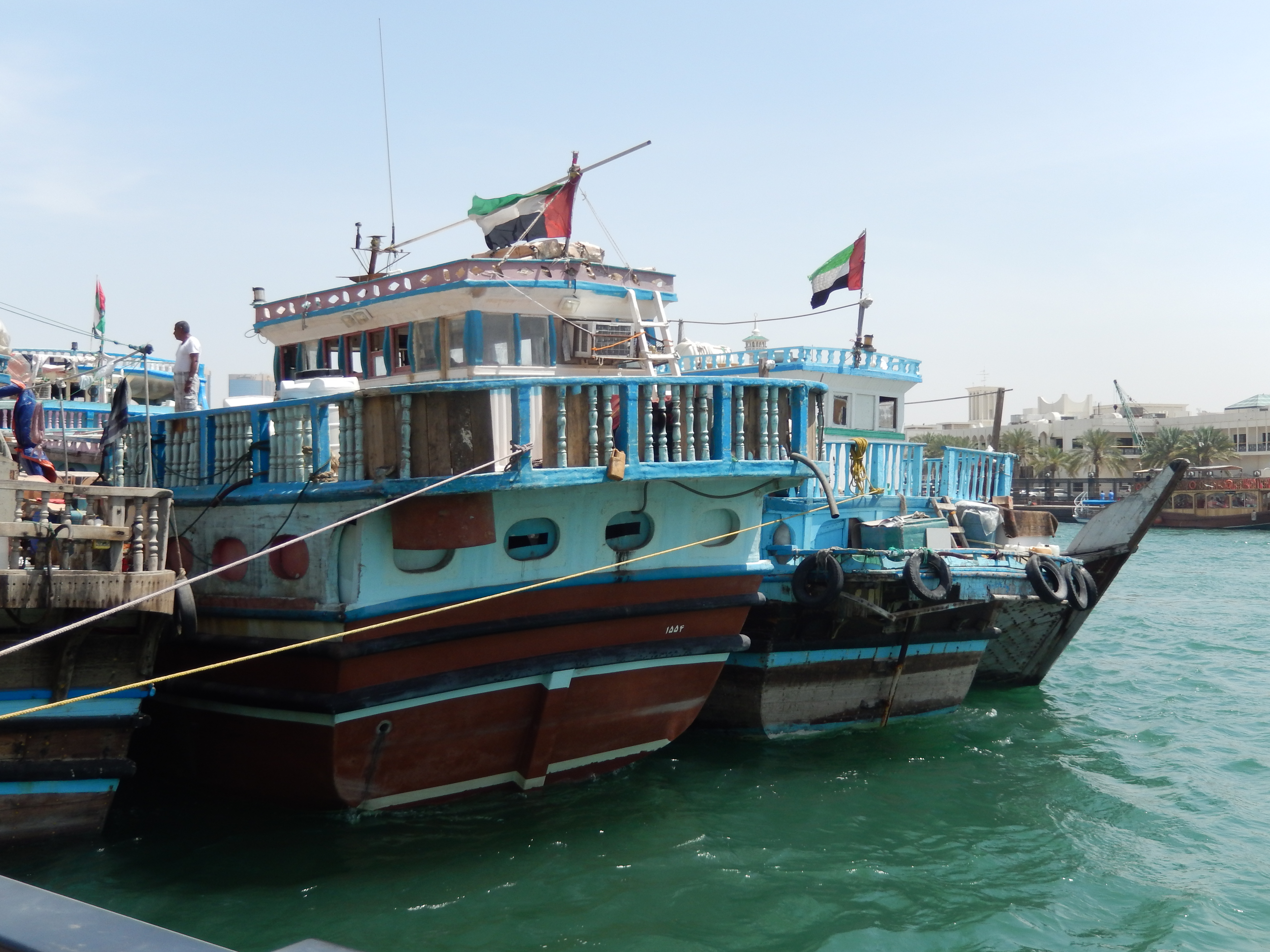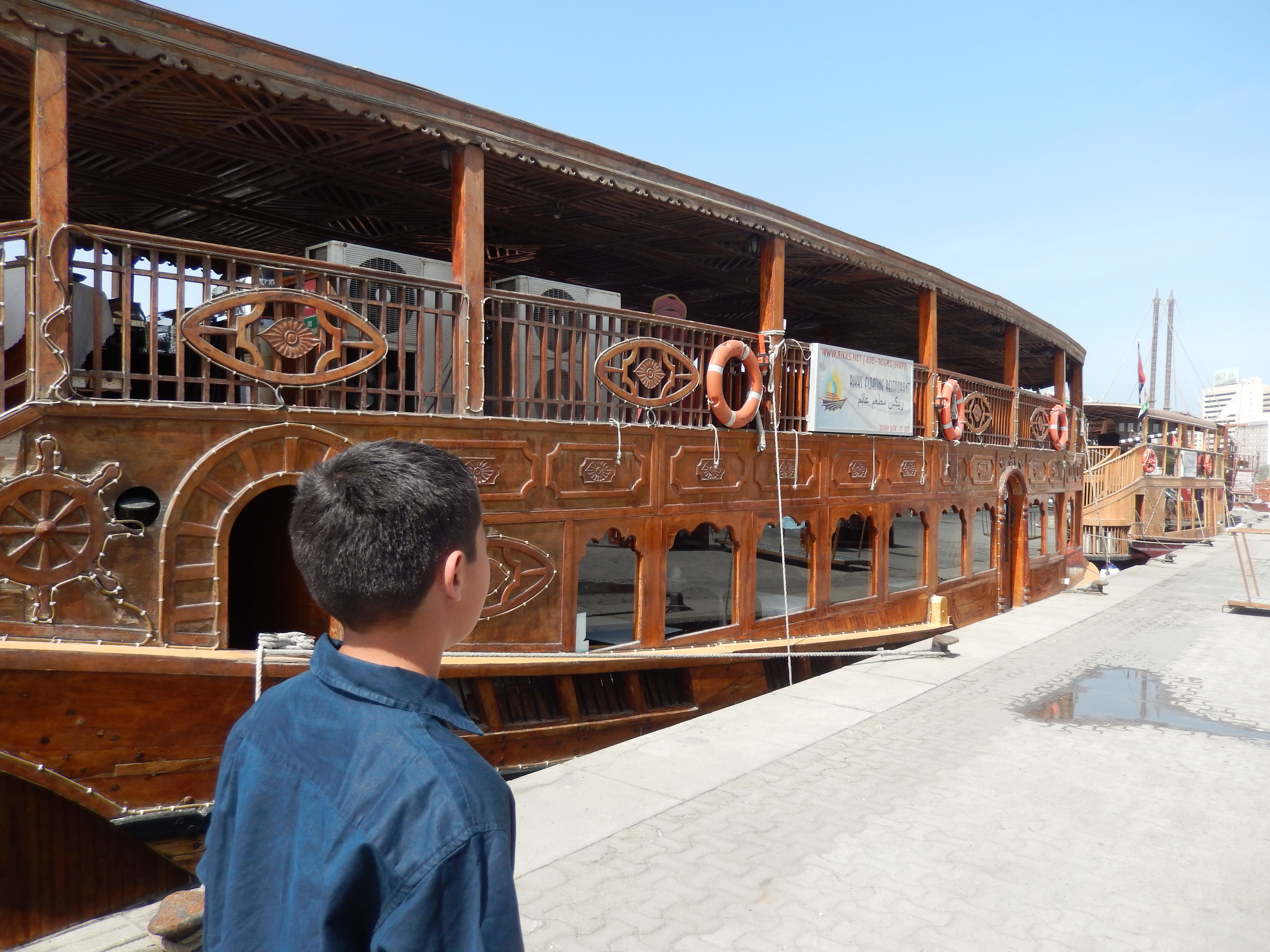 So today today we toured Old Dubai. The Dubai creek has every type of water rides, from this giant modern wooden yacht, to the dhows (traditional Emirati sailing vessels) or the small abras (water taxis).